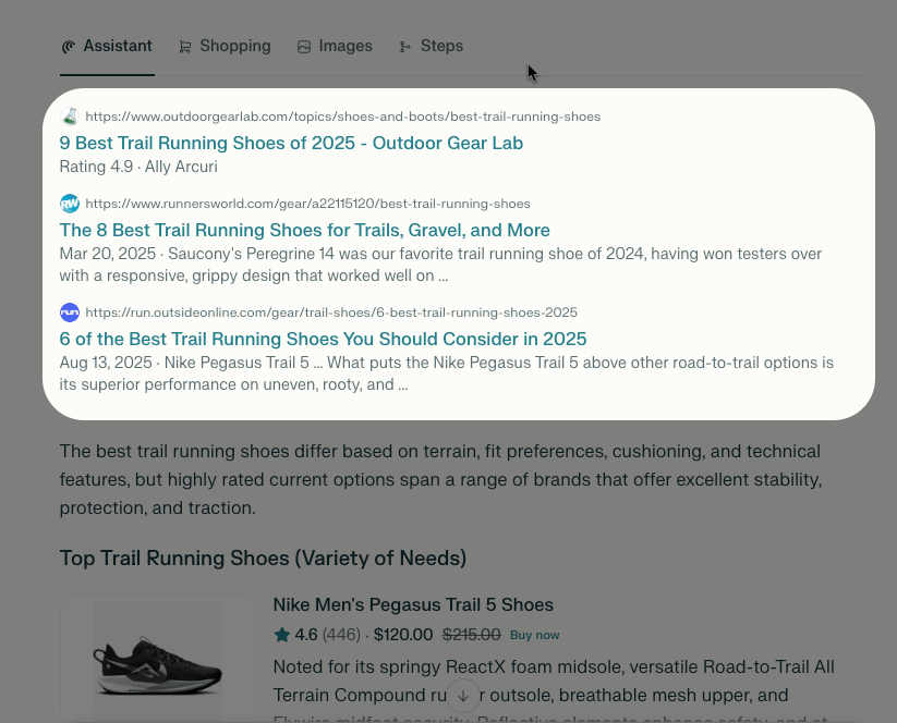 Then below it is the same LLM answer you would get. Other than that, the tabs and general experience are all exactly the same.