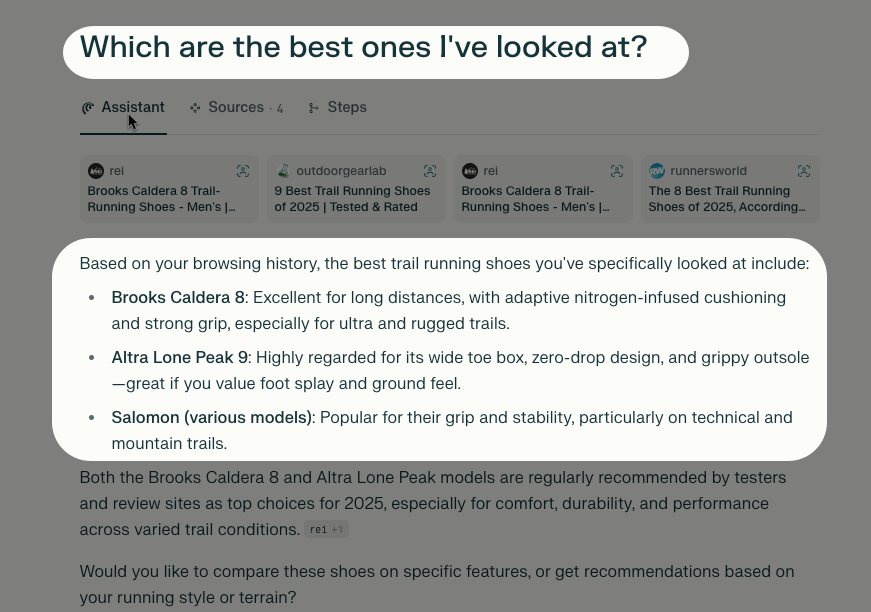 Then I can ask it questions like “Of the shoes I’ve looked at, which one do you recommend” and it will give an answer. This creates an era of personalized content.