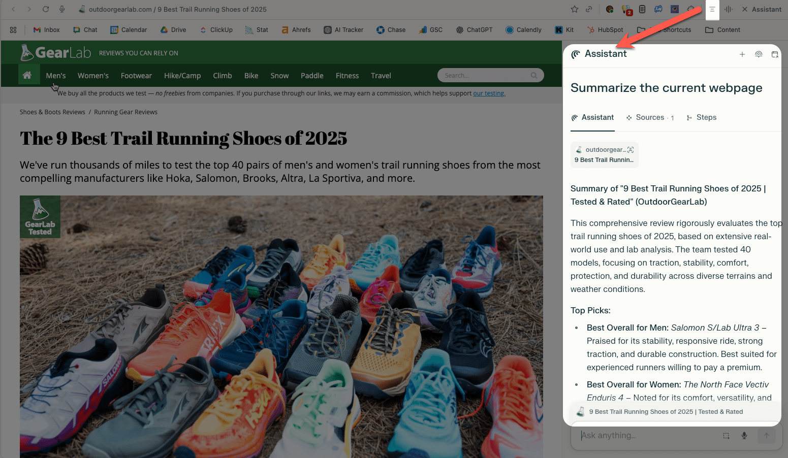 Comet also has an “Assistant” button that you can run on any page. This allows you to run Perplexity on top of any page you want. There’s a built in “Summarize” button that will provide a high level summary of the content.
