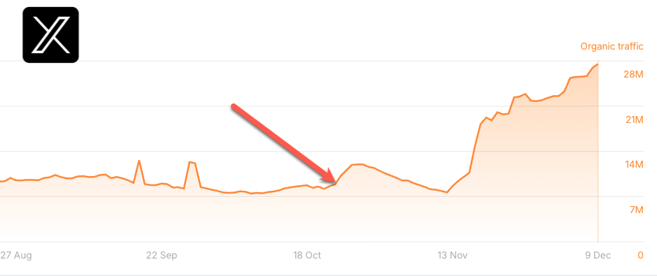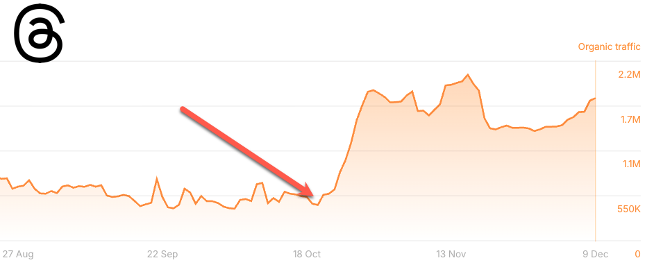Well as it turns out, other social posts are in fact seeing seeing the same trends. Twitter and Threads are both seeing sizable leaps in terms of their organic traffic.