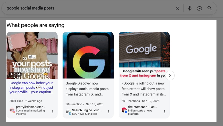 I think for a long time SEOs have generally said that social media doesn’t impact Google’s rankings. That seems to be slowly changing over time. Google has been integrating social content on the search results for awhile now (Twitter feeds, Forums tab). However, this is yet another push to get more “human experiences” directly in the search results.